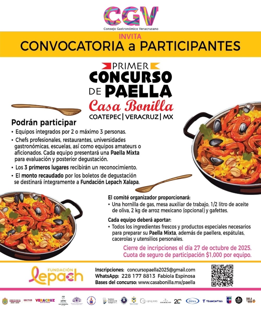 El Consejo Gastronómico Veracruzano (CGV), Casa Bonilla y Fundación LEPACH, invitan a participar en el «Primer Concurso de Paella», el cual tiene como objetivo apoyar la lucha contra el cáncer.