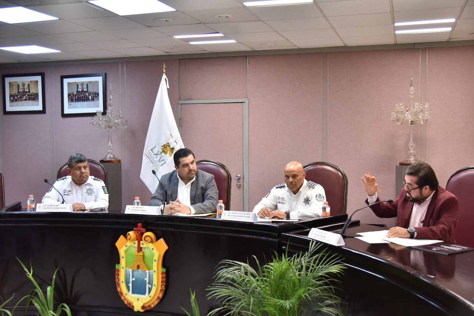 En presencia del titular de la Secretaría de Seguridad Pública (SSP) del estado, Cuauhtémoc Zúñiga Bonilla, y del subsecretario de Operaciones de la misma dependencia estatal, Rafael Ángel González Uscanga, los diputados Roberto Francisco San Román Solana y Sergio Lenin Guzmán Ricárdez, presidente y secretario de esta instancia legislativa, respectivamente, signaron el documento y reafirmaron el compromiso y la confianza de mantener la estrecha colaboración con el gobierno estatal.