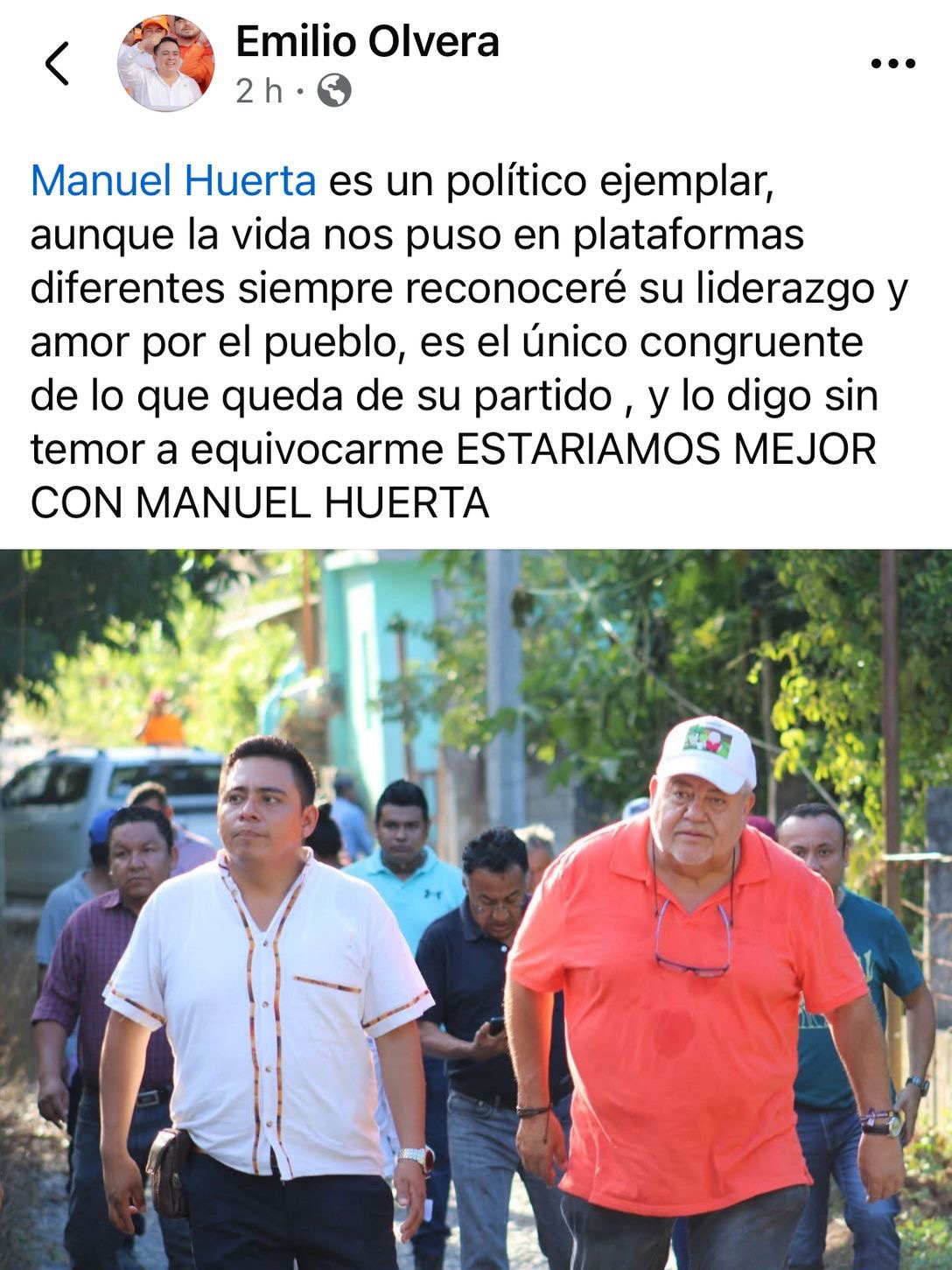 “Es una burla que ahora hasta ex candidatos de MC le agradezcan públicamente su apoyo a Huerta, como es el caso del narquito Emilio Olvera en Poza Rica. Esto es un claro ejemplo de que Manuel Huerta está trabajando en contra de Morena y en contra del movimiento de transformación. Y también trabaja en contra de la presidenta Claudia Sheinbaum Pardo y de nuestra gobernadora Rocío Nahle García”, concluyó.