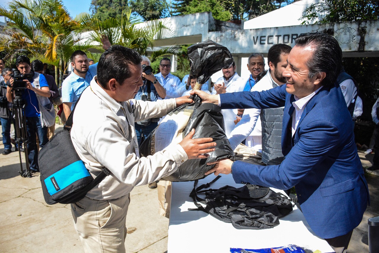 Veracruz, Ver., 12 de diciembre de 2019.-* El gobernador Cuitláhuac García Jiménez y el secretario de Salud, Roberto Ramos Alor, entregaron uniformes y equipo de protección a 846 integrantes del cuerpo de vectores de las 11 Jurisdicciones Sanitarias de esta dependencia, dignificando así el trabajo y compromiso en las acciones para el combate del dengue en el Estado.